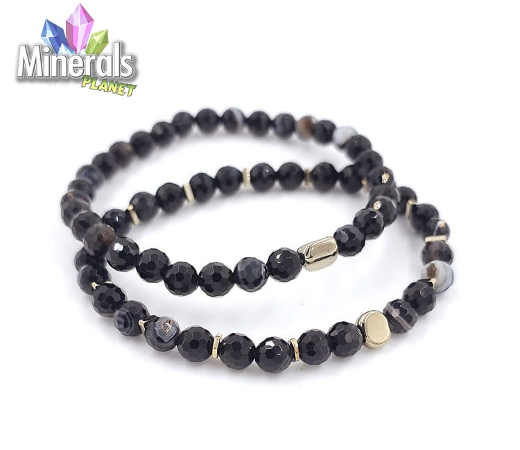 Bransoletka fasetowana - Onyks agat gold 6mm