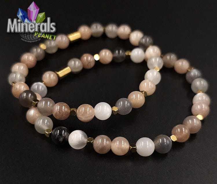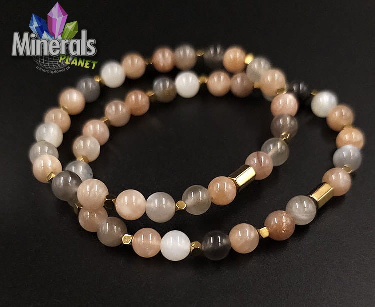 Bransoletka gładka, błyszcząca z naturalnego kamienia słonecznego i księżycowego.