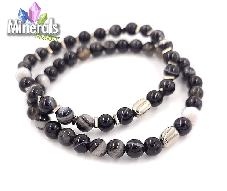 HEMATYT - naturalny minerał z grupy metali, dodawany do naszych bransoletek srebrny lub złoty pomiędzy koralikami.