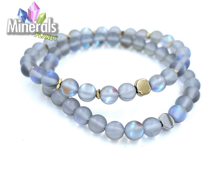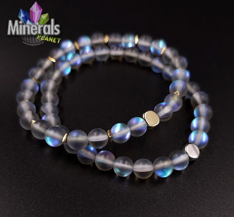 Bransoletka wykonana z kwarcu opalizującego - Blask laguny (Lagoon shine), odmiana niebieska "blue shine".